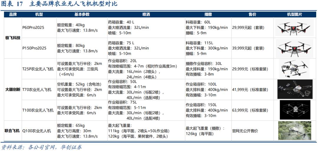 对比同售价(29999元)的极飞科技P60Pro 2025和大疆T25P农业无人机。载重能力方面,P60Pro 2025额定载重40kg,T25P最大载重仅25kg。