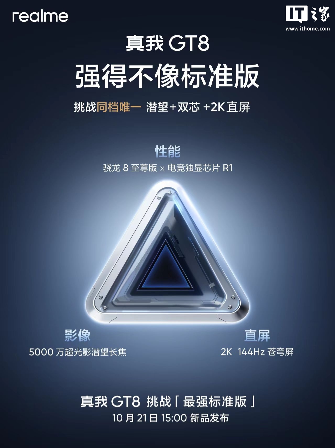 realme 新品发布会将于 10 月 21 日下午 15 点正式举行,预计将发布 GT8 系列手机等新品。