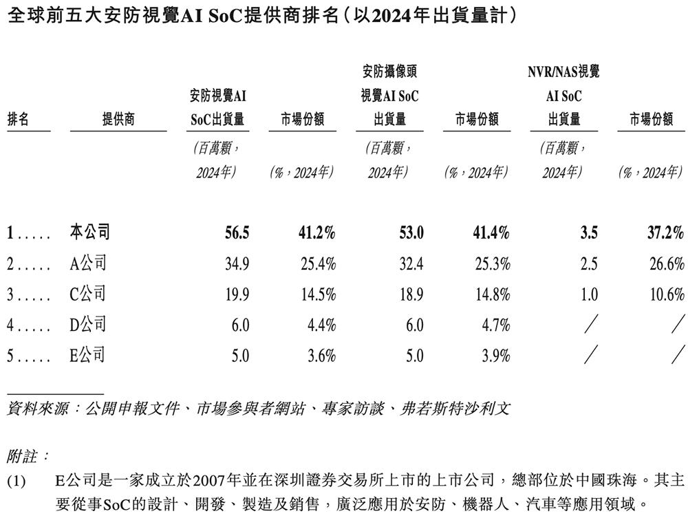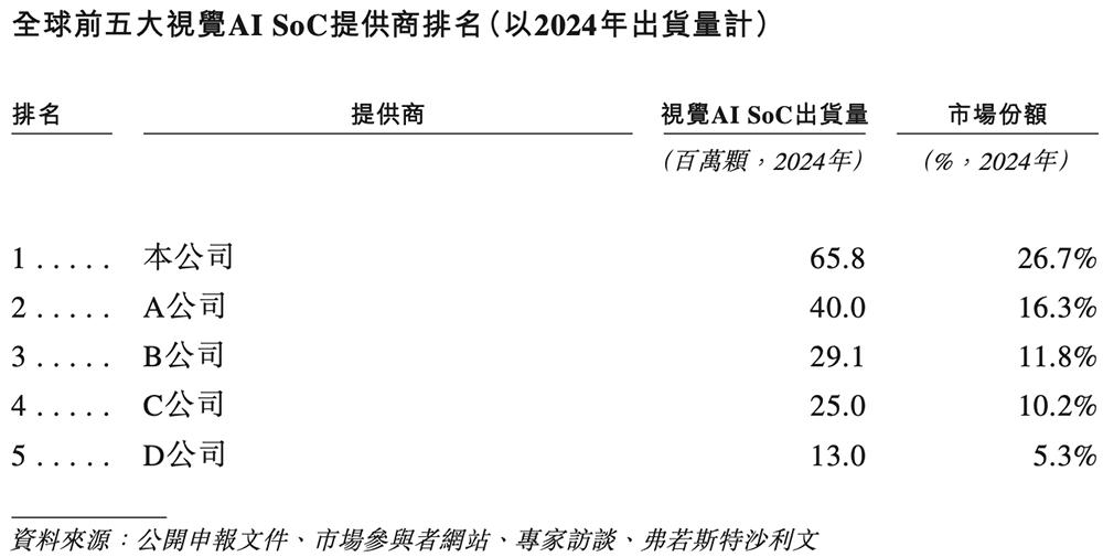根据招股书,按2024年出货量计,星宸科技是全球最大的视觉AI SoC供应商,占据26.7%的市场份额。