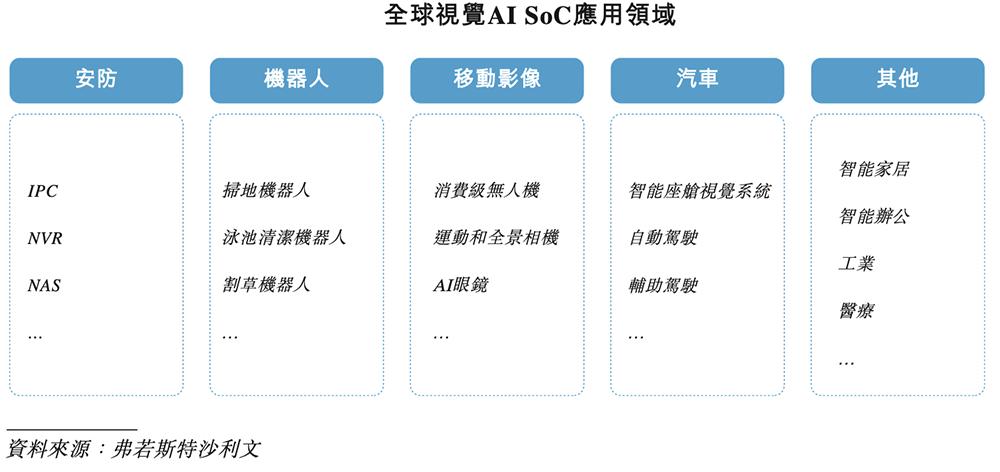 相比其他类型的AI SoC,视觉AI SoC更专注于视觉数据处理,适合实时、低延迟推理,广泛应用于多类场景的端边侧设备,包括摄像头、视频存储及分析设备(如NVR、NAS等)、机器人、消费级无人机、运动相机、AI眼镜、智能车载等领域,支持实时图像处理、物体识别、场景分析等功能。