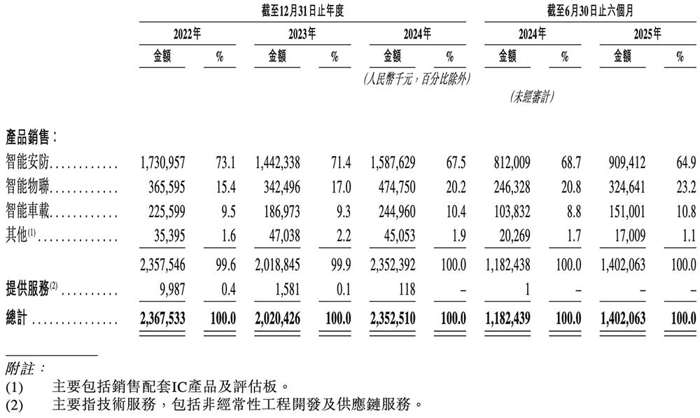 其产品组合涵盖三大业务线——智能安防、智能物联、智能车载。其中智能安防是其第一大营收支柱,但收入占比近年来逐年下滑。