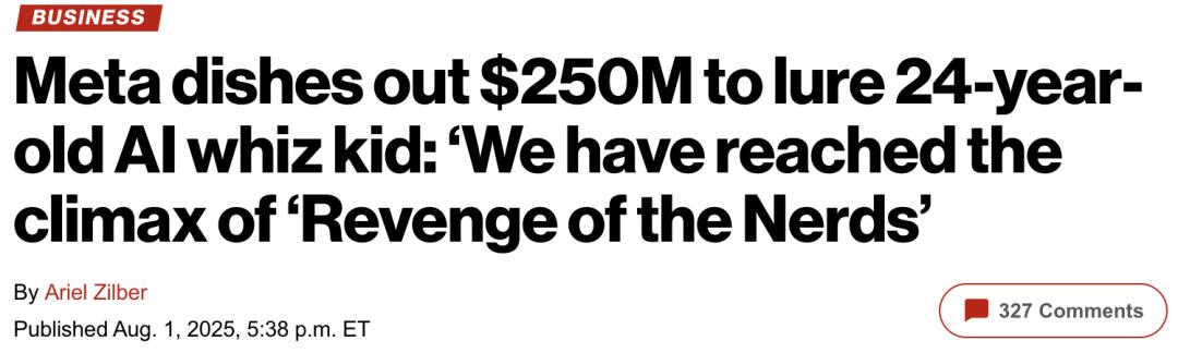 据外媒报道,Meta历史上最高的薪酬包之一是2.5亿美元(约合人民币18亿元),给了24岁「人工智能奇才」Matt Deitke据悉,第一年他就能获得1亿美元的收入。