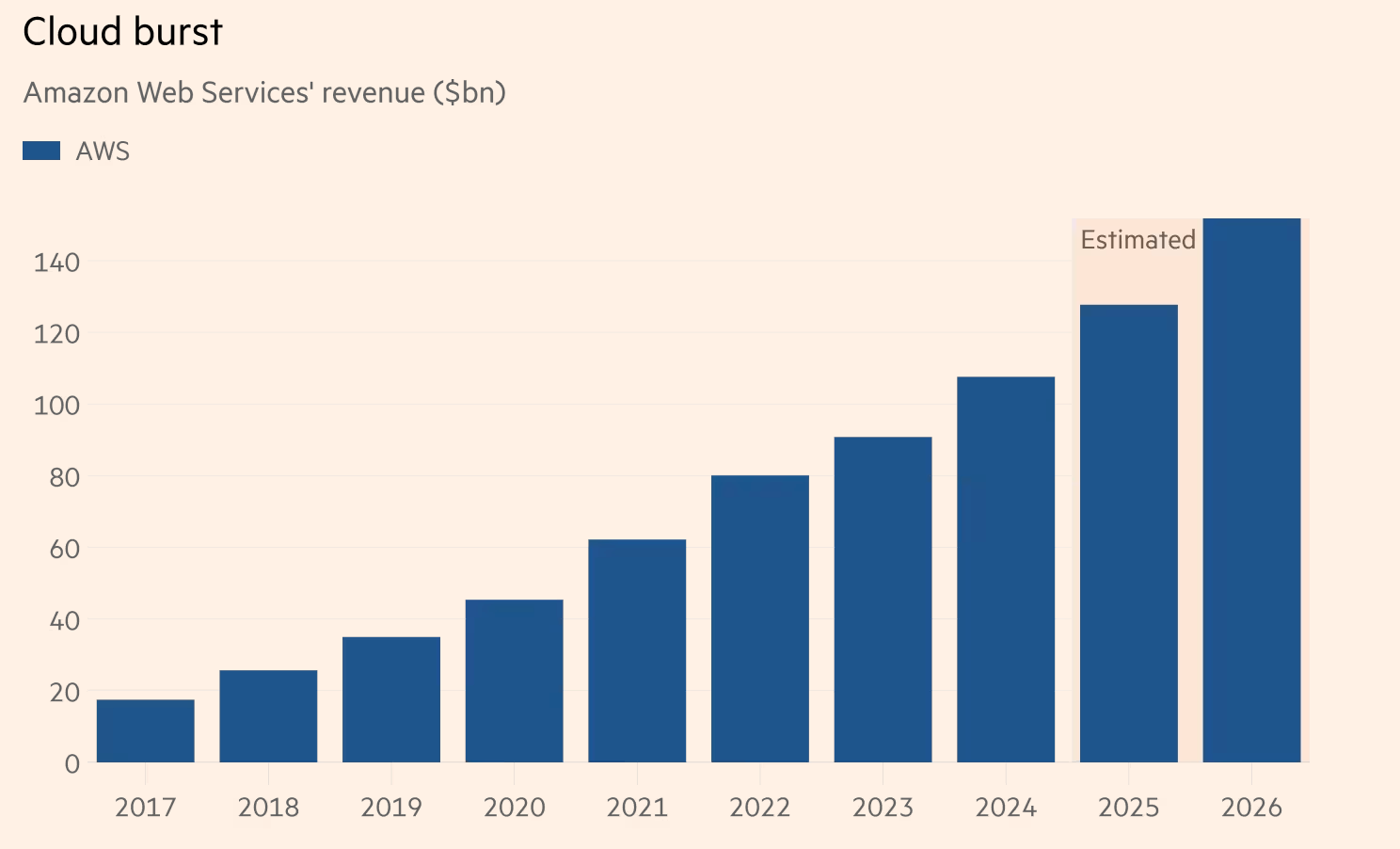 此类故障并非首次,但随着更多数据与用户向线上迁移,事故代价正持续攀升。2017年,亚马逊云服务因一名工程师的打字错误短暂出现故障时,其年营收为200亿美元。而现在,根据伦敦证券交易所集团汇总的分析师预测,亚马逊云服务年营收已接近1300亿美元,且仍保持约20%的年增长率。