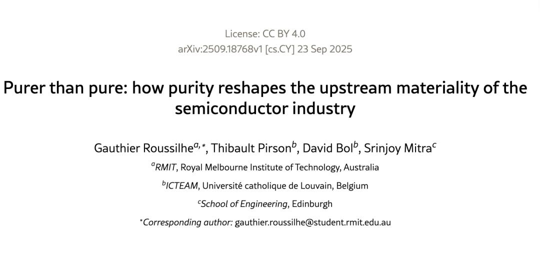 本文表明,通过基于纯度的方法来研究半导体制造的物质性,是探索半导体行业上游物质性的一种有效途径。我们阐述了为什么为了更好地理解这种物质性,需要更深入地研究其与化学工业以及采矿业(人们通常认为采矿业与原材料提取有关)之间的相互作用。半导体行业对(超)高纯度材料的需求非常特殊,这使得我们能够在全球范围内分离出一些行业和工厂,从而凸显供应链中的瓶颈和高度依赖性。这揭示了(i)其他地理参与者的存在,以及(ii)电子行业对其他大规模生产的工业部门(例如钢铁)的强烈依赖。我们通过四个涉及半导体制造的关键材料(即硅、铝、氖和金)的案例研究来说明这一点。预期的半导体行业技术进步(即更小的节点)将进一步强化本研究的结论。这可能需要增加材料的多样性,并提高严重依赖超纯元素的制造工艺的复杂度。