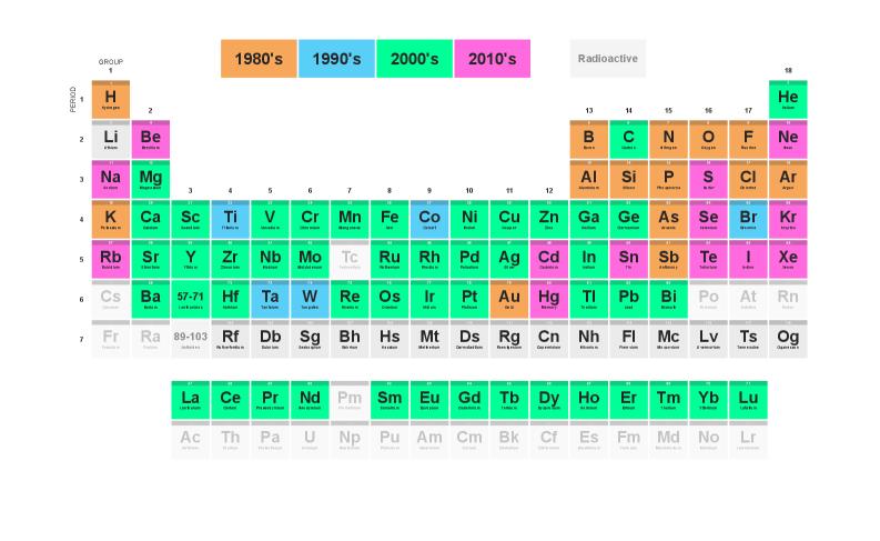 根据我们的最佳估计(图3),半导体行业现在需要元素周期表中超过85%的非放射性元素。在过去的30年里,这种从少数几种元素到几乎所有可能元素的转变相对而言并未引起人们的注意和关注。微芯片制造不仅需要大量的材料,而且这些材料必须极其纯净。