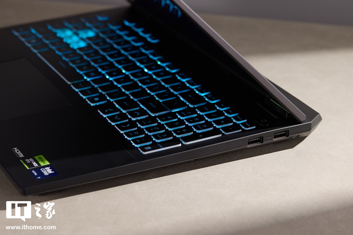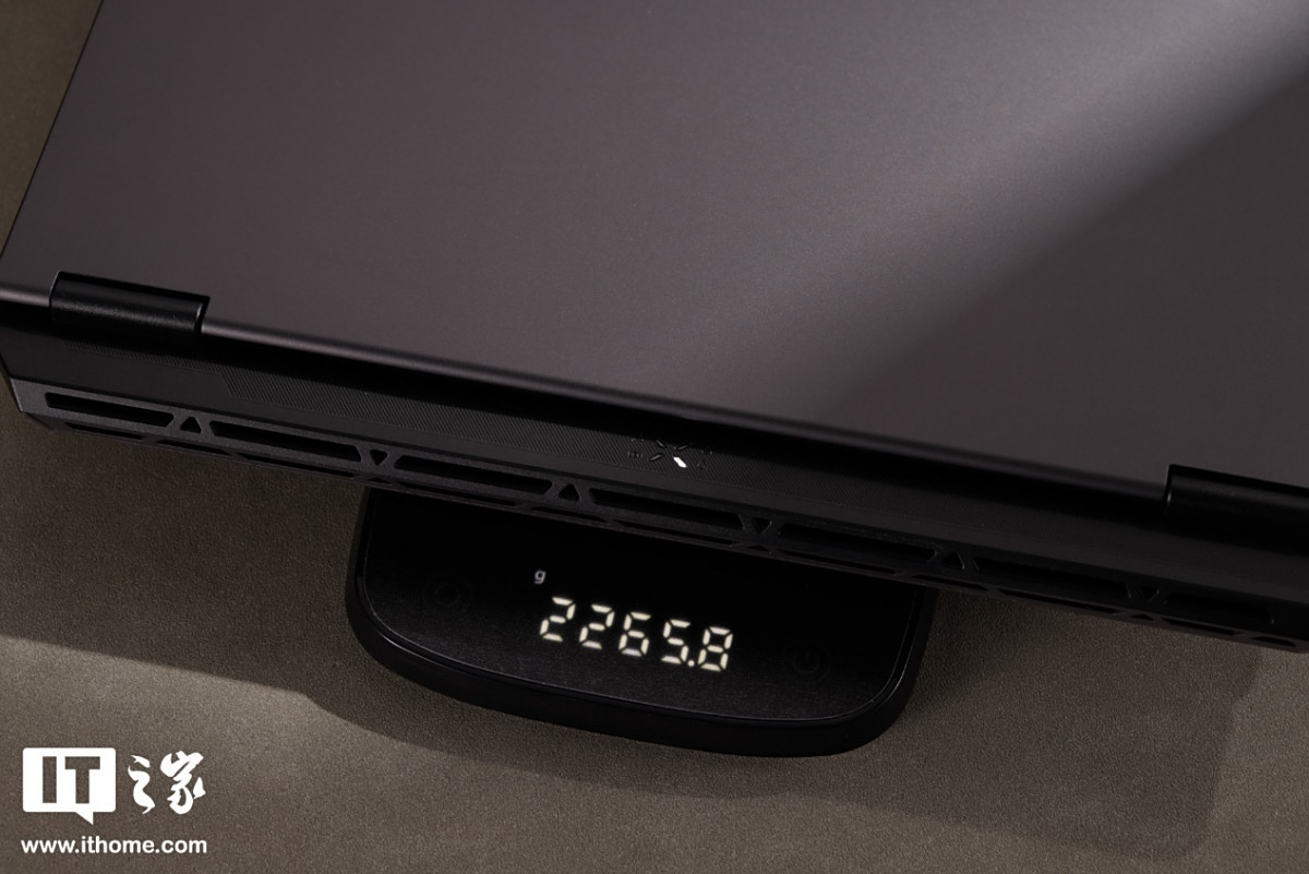IT之家这次拿到的是日蚀灰配色,去掉了四角的点缀线条装饰,镭雕工艺的天选 Logo 位置依旧,配合细腻喷砂工艺的金属 A 壳,整体更加简约低调。
