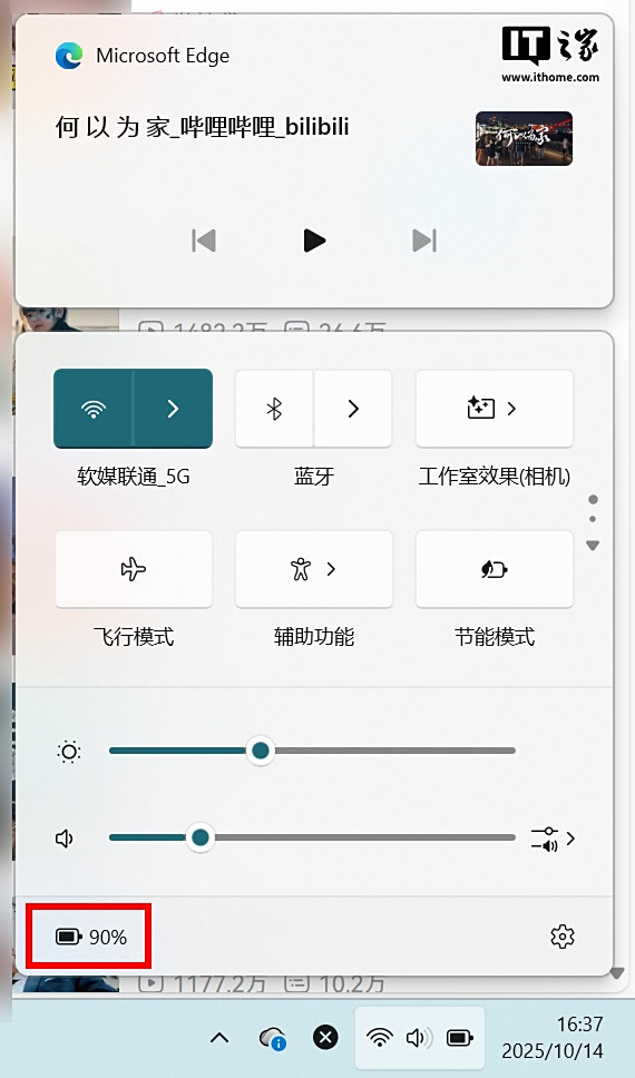 第二轮测试,我们模拟了一个播放在线视频场景的学习 / 影音娱乐,打开网页端B站,播放带有弹幕的在线纪录片,60 分钟后电量由 100% 下降至 90%,耗电 10%,预估续航可达 10 小时左右。