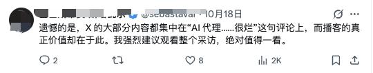 该访谈内容在外网广泛传播,社交平台X上很多网友的评价是“必看”、“每一分钟都弥足珍贵”、“绝对值得一看”……这些颠覆认知的观点如何而来?又指向什么?智东西对截取了2.5小时访谈中的核心内容,进行了不改变原意的编辑。