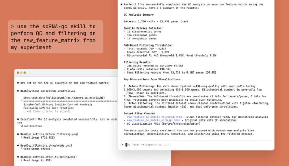 该公司正在开发首批科学技能,例如基于scverse最佳实践的“single-cell-rna-qc”技能,用于对单细胞RNA测序数据进行自动化质量控制和过滤。同时,Anthropic也鼓励科学家根据自身需求构建自定义技能。