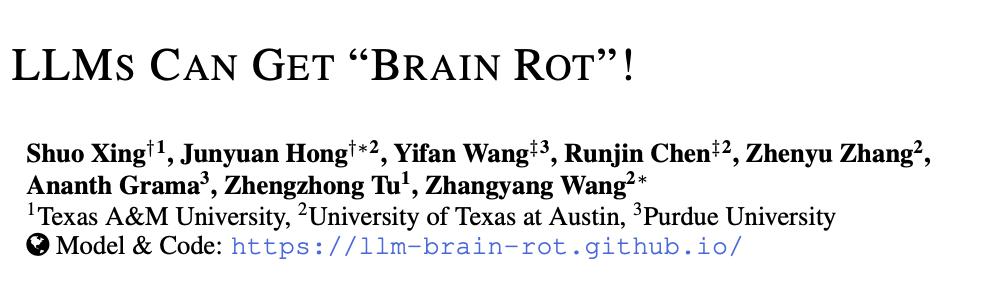 - 论文标题:LLMs Can Get "Brain Rot"!