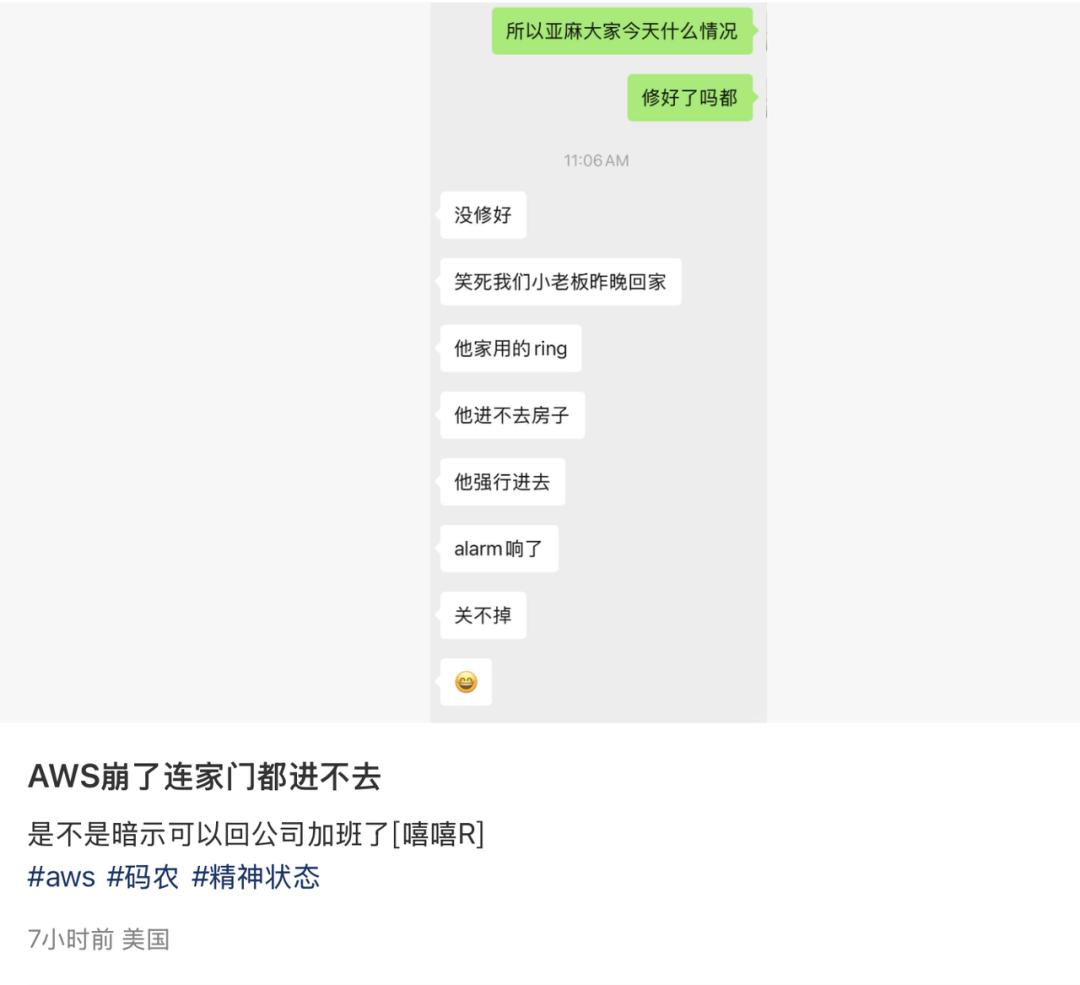 智能家居也是受害者重灾区。亚马逊自家的 Alexa 语音助手一停摆,语音控制家电成空谈,有网友称“Alexa 闹钟一响就关不掉”,评论区网友跟帖:“我家 Alexa 和 Echo 都挂了,定的闹钟一点没响”。