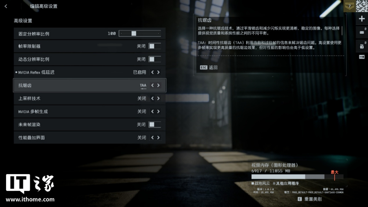 开启 DLSS 4 需要玩家点开高级设置的编辑按钮进入,激活上采样技术选项,然后通过上采样质量对 DLSS 基础质量进行调节,NVIDIA 多帧生成选项支持 2 倍、3 倍和 4 倍预设,如果不开启 DLSS 4 相关选项则默认只有 TAA 抗锯齿选项被打开。