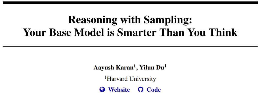 论文标题:Reasoning with Sampling: Your Base Model is Smarter Than You Think