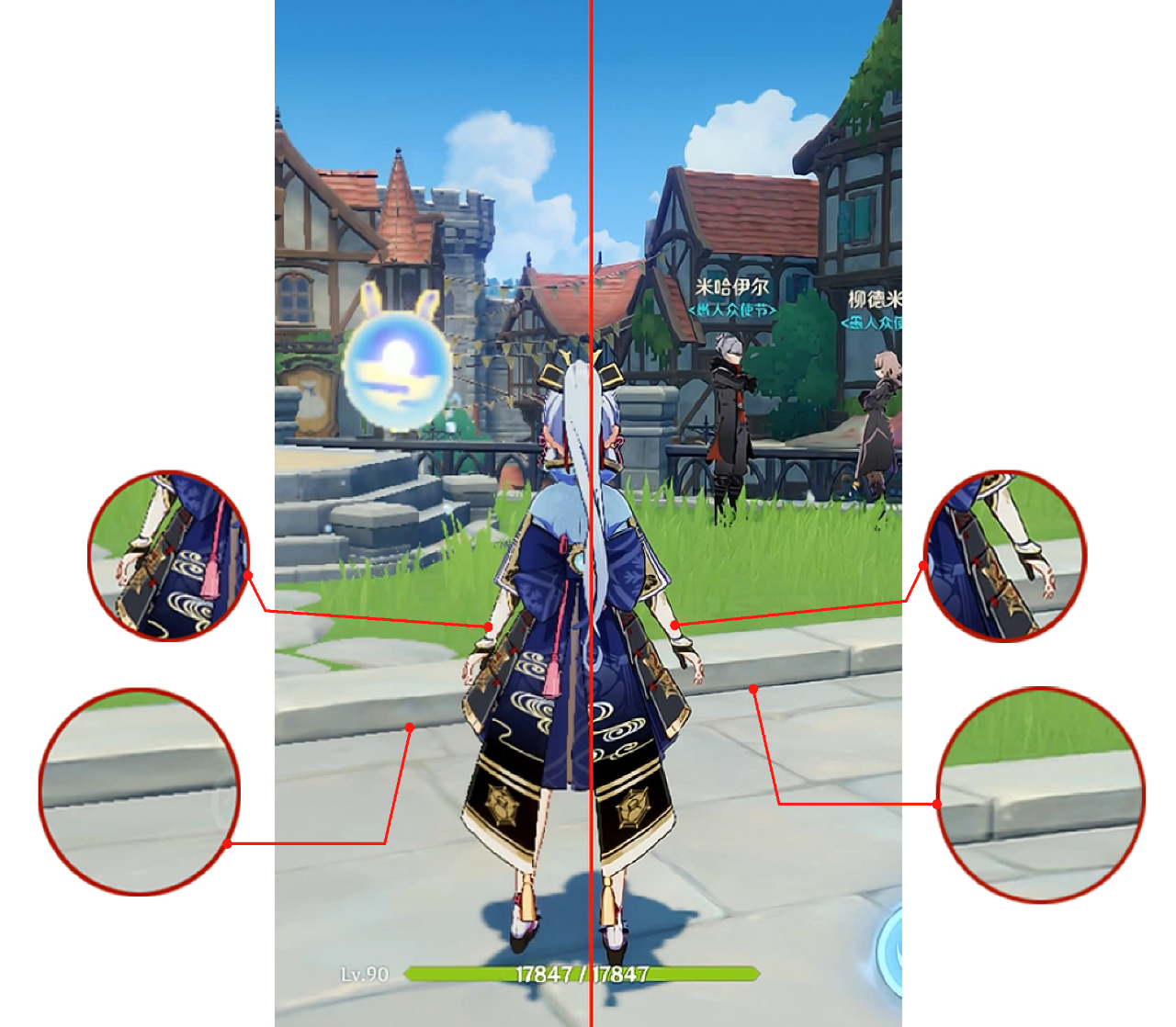 在帧率优化方面,该芯片支持多档位AI动态插帧,可将终端处理器输出的30fps /60fps低帧率画面通过AI算法升级至最高165fps高帧率,叠加硬件级运动补偿算法消除画面拖影与卡顿,尤其在高速移动的显示场景中,画面连贯性提升显著。而AISR画质超分模块则针对低分辨率画面的细节损失问题,通过AI深度学习算法实现像素级优化,可将原始的低分辨率画面提升至2K超清规格,同时增强画面纹理和线条细节,并解决了传统超分技术常见的“锯齿边缘”“断线模糊”问题。