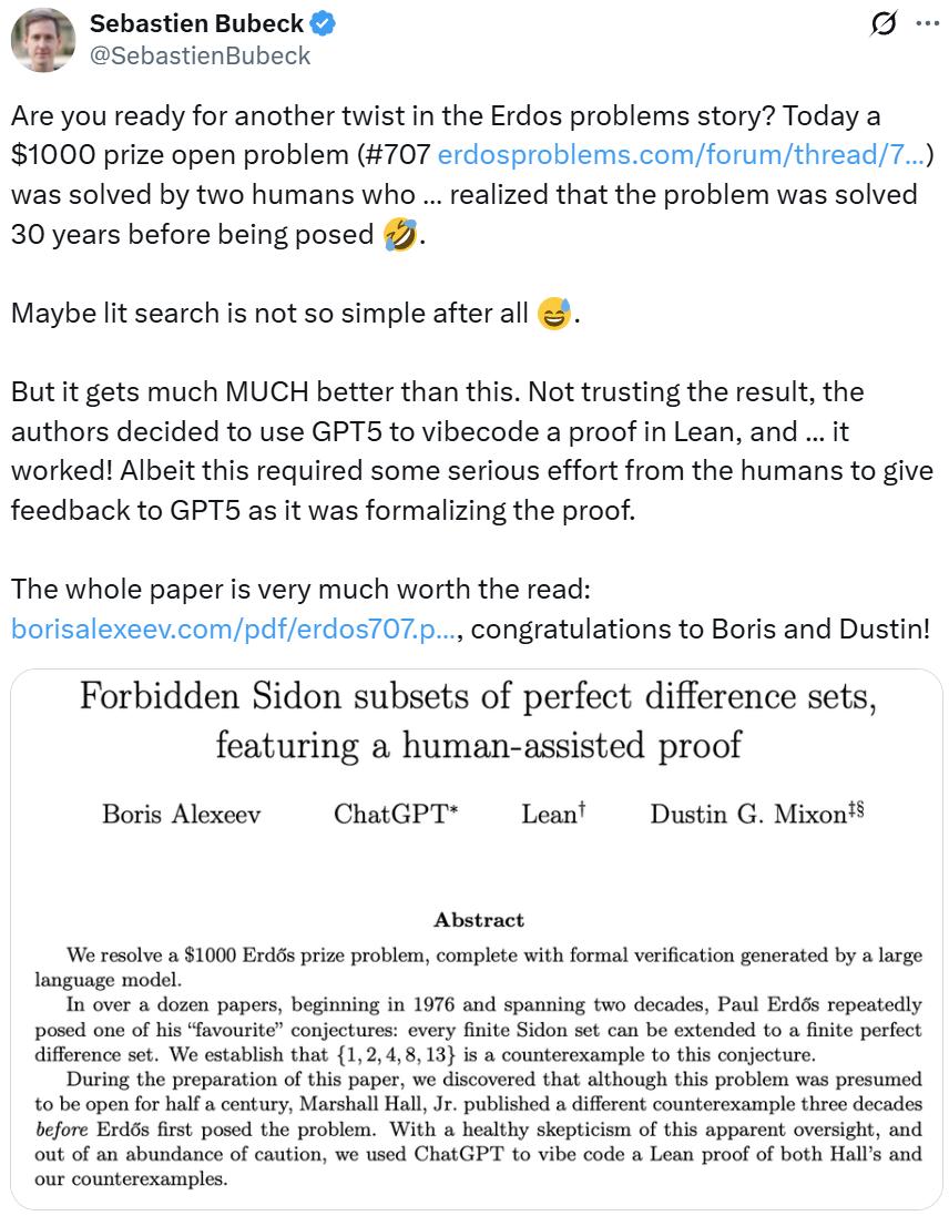 然而,讽刺的是,当人们还在辩论 AI 是不是一个合格的「文献检索员」时,真正的数学发现已经悄然发生。