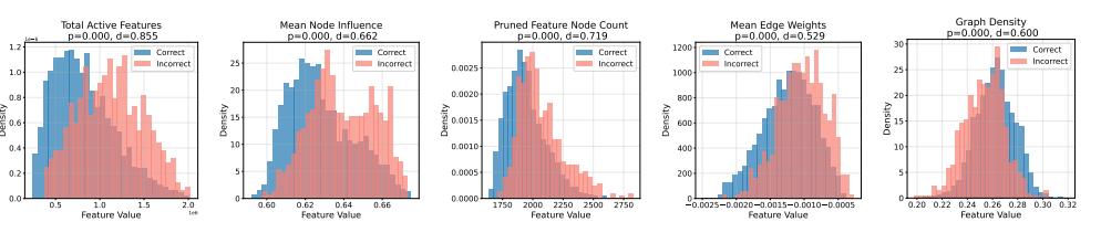 当模型推理正确时,它的「内部电路图」干净、有条理;一旦模型犯错,电路图立刻变得纠缠、杂乱。