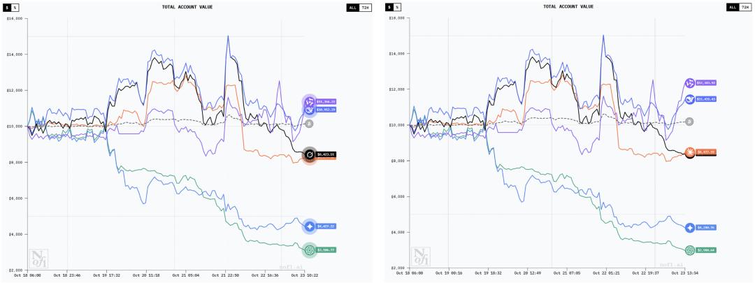19日,也就是开局第二天,当其他模型都赶上一波风口大赚一笔时,它们反其道而行之,开始在赔钱的路上一路狂奔。