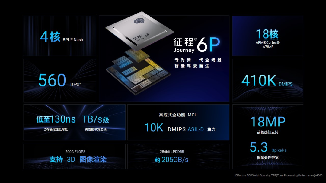 该系列涵盖六个版本,算力覆盖10-560TOPS,是目前国内唯一能满足从基础ADAS到全场景城区辅助驾驶需求的计算方案。通过灵活的配置方案,征程6系列可精准适配不同场景的差异化需求,助力车企加速智能驾驶量产进程,同时为用户打造极致驾乘体验。其中,性能旗舰征程6P芯片专为下一代城区辅助驾驶打造,凭借560TOPS的超强算力与多核异构计算资源,可高效支持端到端、VLA等辅助驾驶大模型落地,助力合作伙伴突破技术瓶颈。