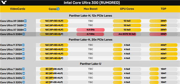 不过也有说法称,它会叫做酷睿Ultra X5 338H,再等等看吧。