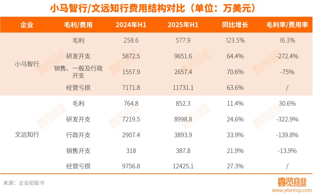 二者都维持高速扩张,但也都在持续亏损。小马智行净亏损9064 万美元,同比扩大 75.1%;文远知行亏损 1.1 亿美元,同比收窄 8.9%。