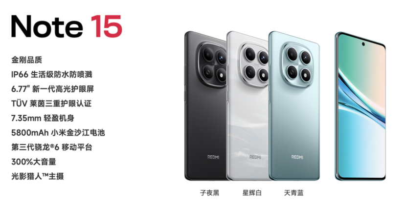 资料显示,小米REDMI Note15是2025年8月份全球发布上市,小米REDMI 15C则是在2025年8月底在国内上市,9月在海外市场发售。
