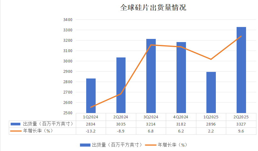 今年以来,全球芯片需求上升推动半导体晶圆厂产能持续扩张。根据国际半导体产业协会(SEMI)旗下硅片制造商协会(SMG)发布的最新季度报告,2025年第二季度全球硅晶圆出货量达到3327百万平方英寸,同比增长9.6%,环比更是大涨14.9%,呈现出半导体市场从底部逐步修复的信号。这也为国产硅片公司提供了新的发展契机。