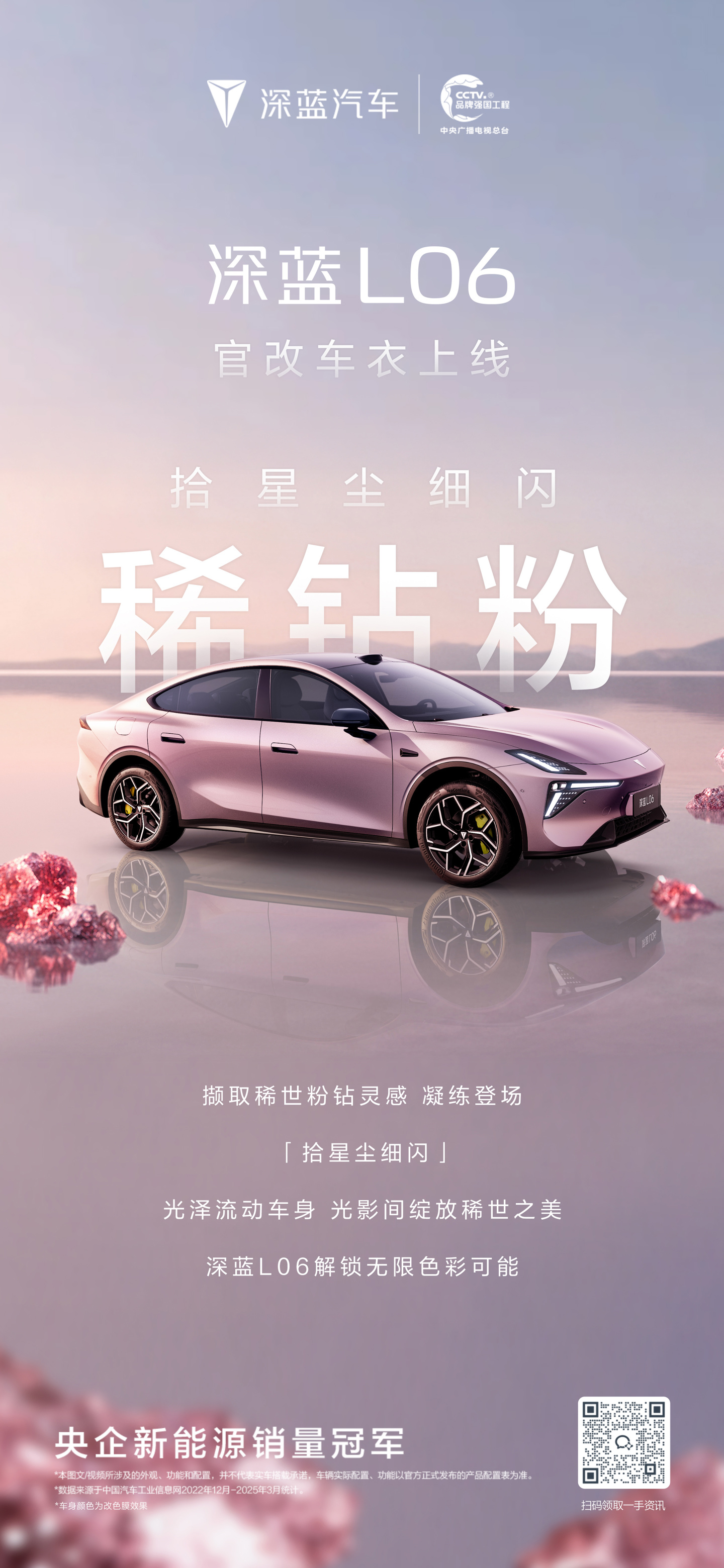 IT之家 10 月 26 日消息,深蓝汽车今日宣布深蓝 L06 现已陆续到店。同时,深蓝汽车官方今日还公布了稀钻粉、锆石红两种“官改车衣”。