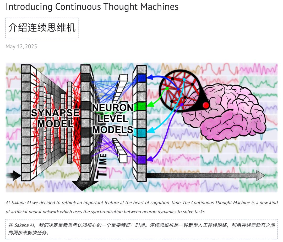 在这种环境诞生成果的一个例子是Sakana的「连续思维机器」,它在神经网络中融入了类似大脑的同步机制。