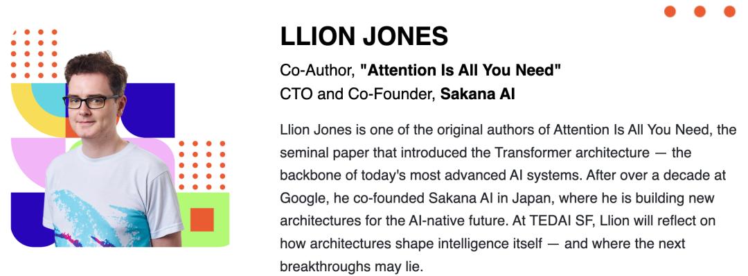 共同作者Llion Jones最近在旧金山的TEDAI大会上当众「叛逃」: