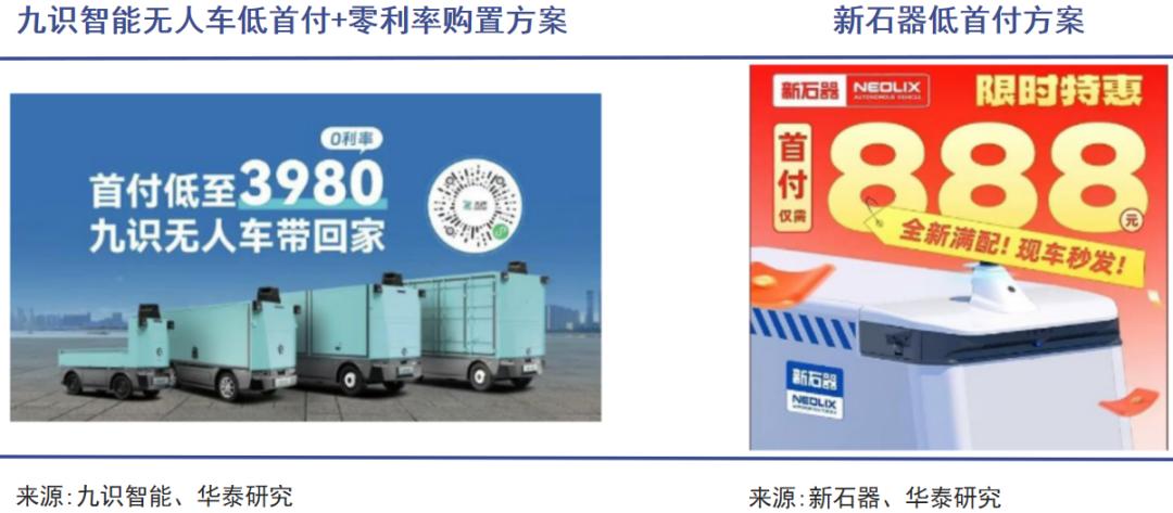像九识智能之类的头部企业,都不再仅仅是卖车,而是采用整车销售 + FSD(完全自动驾驶)订阅的收费模式。在这种模式下,客户可以用低至万元左右的首付获得硬件车辆,然后按月支付自动驾驶系统的订阅服务费。