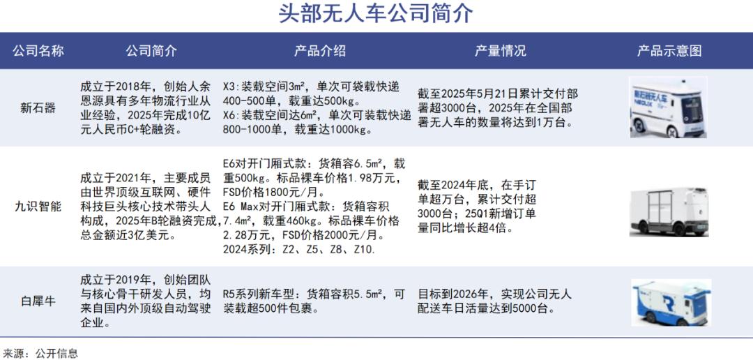 中通快递有高管在“2025快递物流新质生产力发展论坛”中透露,公司无人车保有量已超过2000台。其中有1300多台来自来自九识,另外900多台来自新石器和其他企业。