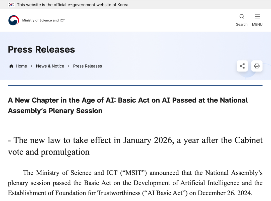 韩国成为亚太第一个、全球第二个(仅次于欧盟)制定全面 AI 监管法规的国家