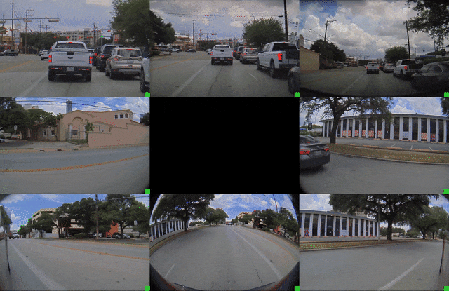 如下九宫格演示中,特斯拉「世界模拟器」生成了汽车行驶过程中的不同视角。