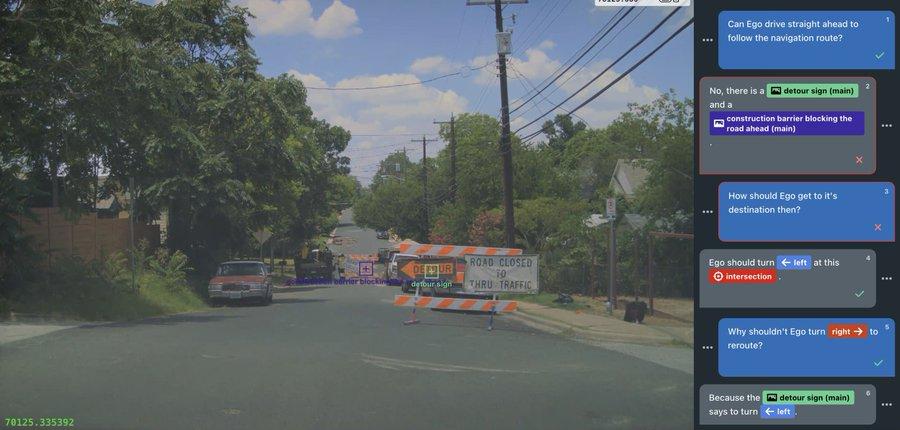 此外,AI还能用自然语言解释它的决策。这套系统已经在FSD v14.x版本中部分运行。