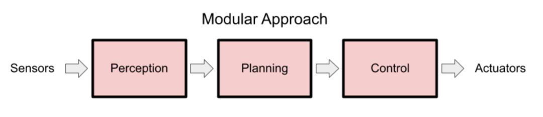 第一条路,也是绝大多数公司选择的路,可以称之为「模块化」的方法。这种方法将驾驶任务拆解成几个独立的步骤: