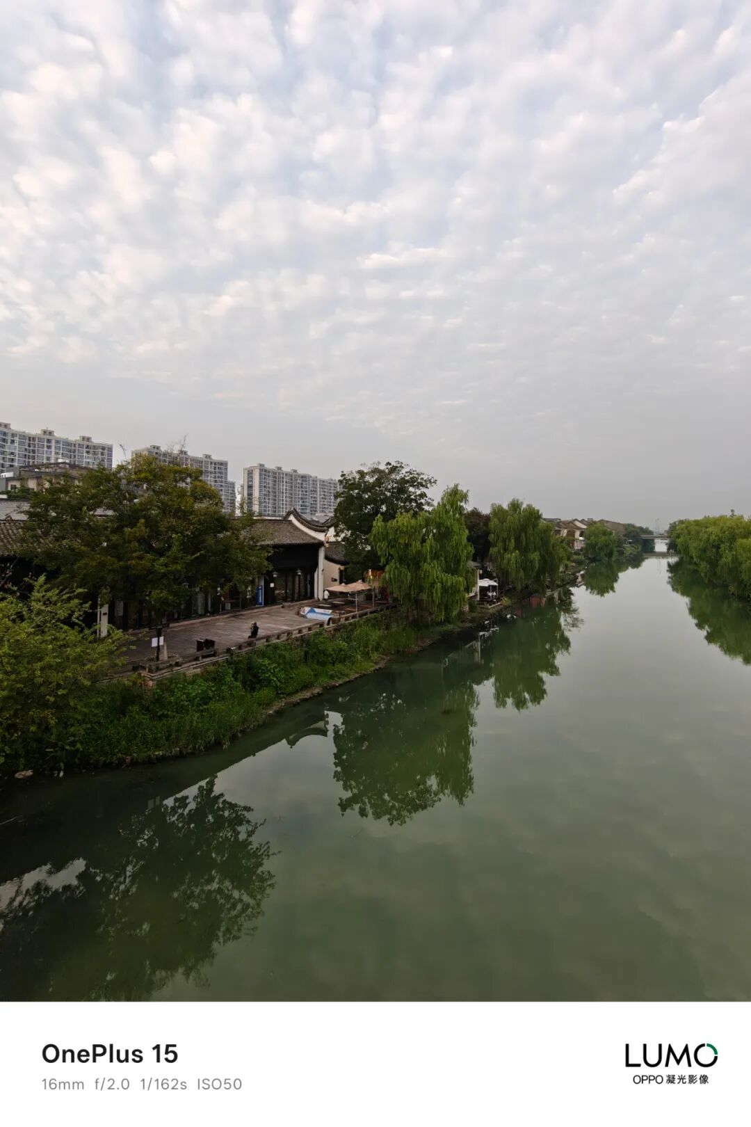 超广角倒是完全反了过来,一加 15 显得更"阴天"一些。