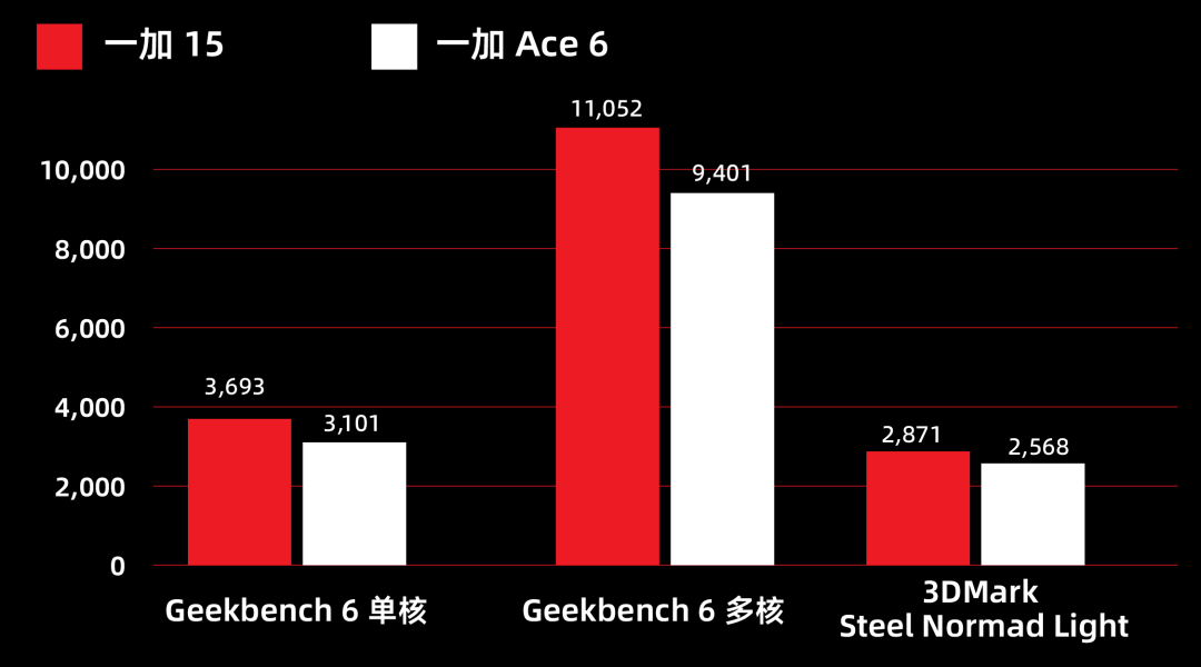 作为一加的旗舰,一加 15 所使用的处理器,当然是最新一代的高通骁龙 8 Elite Gen 5。而一加 Ace 6 则使用了去年旗舰芯片骁龙 8 Elite。