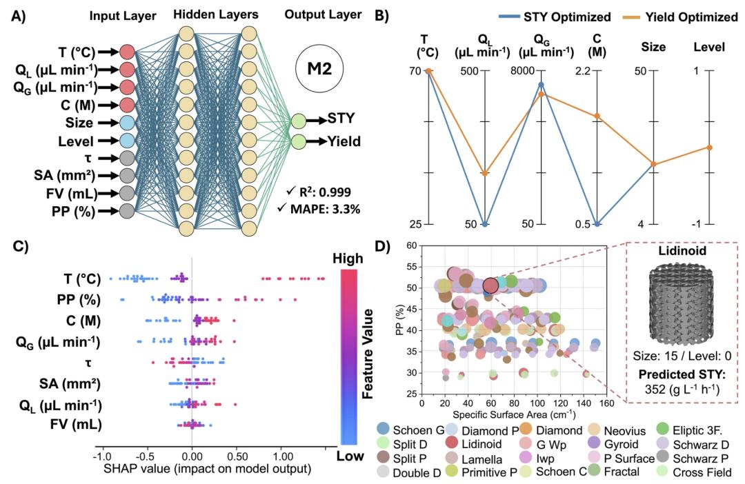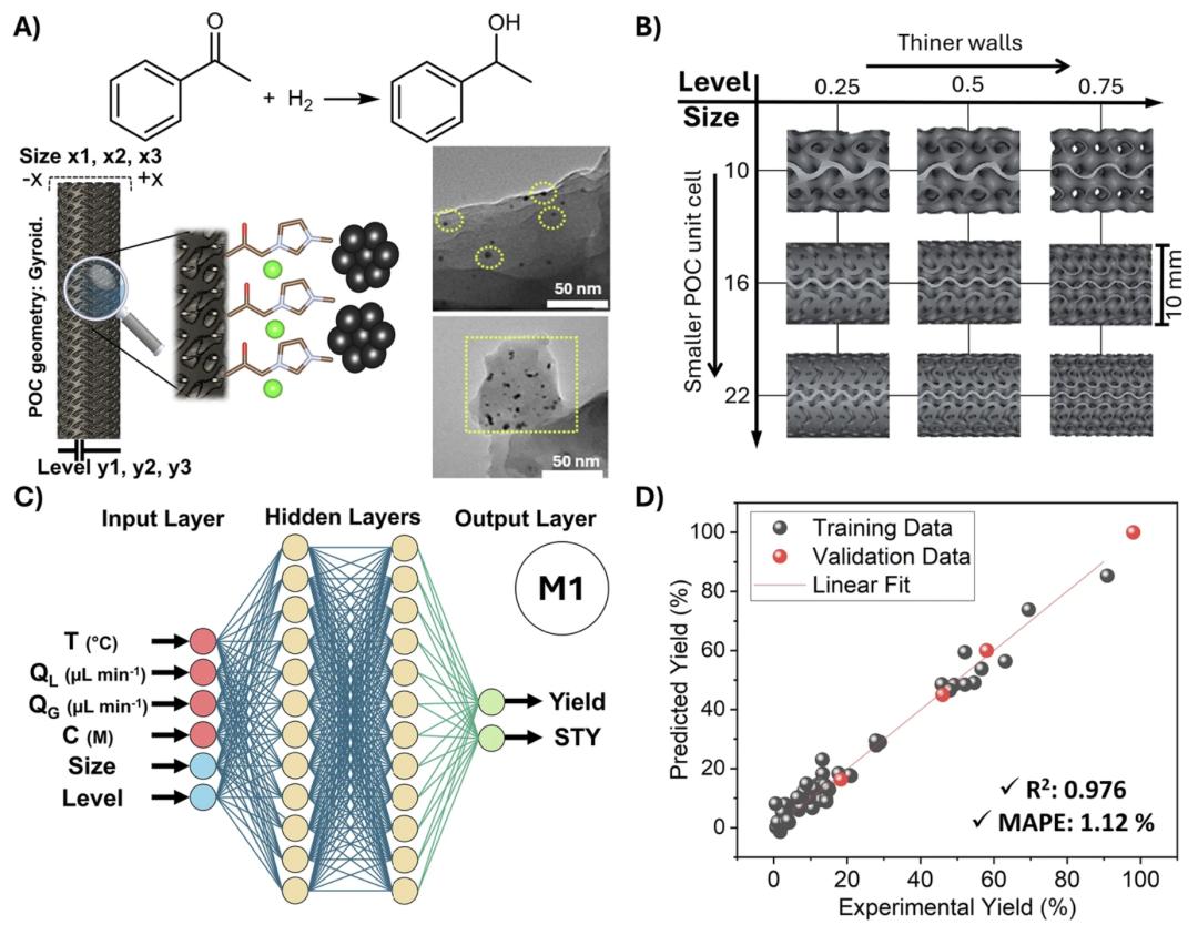 * 将数学建模、机器学习与自动化实验系统结合,实现催化反应器从几何设计、3D 打印制造到实验优化的全流程一体化;