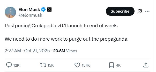 这场以“去偏见”为名的实验,最终演变成了用一种叙事偏见替代另一种偏见的文字游戏。在马斯克精心构建的媒体生态中,Grokipedia确实找到了自己的定位——不过这个定位,离“客观中立”的理想似乎越来越远。
