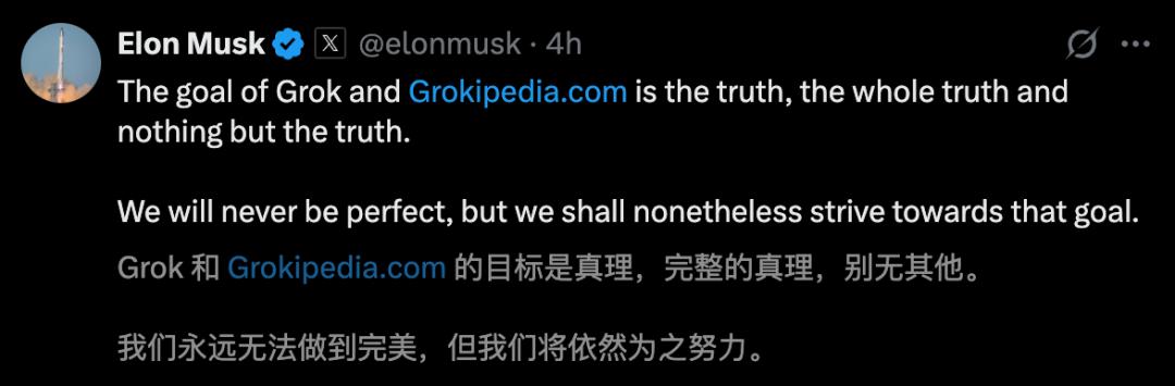 Grok和Grokipedia的终极目标是真理,全部的真理,别无其他。