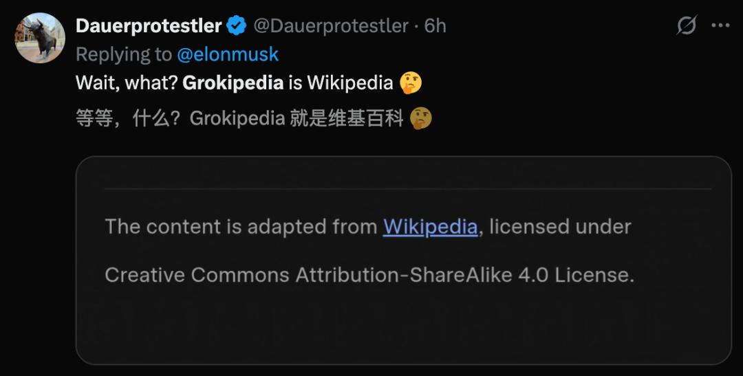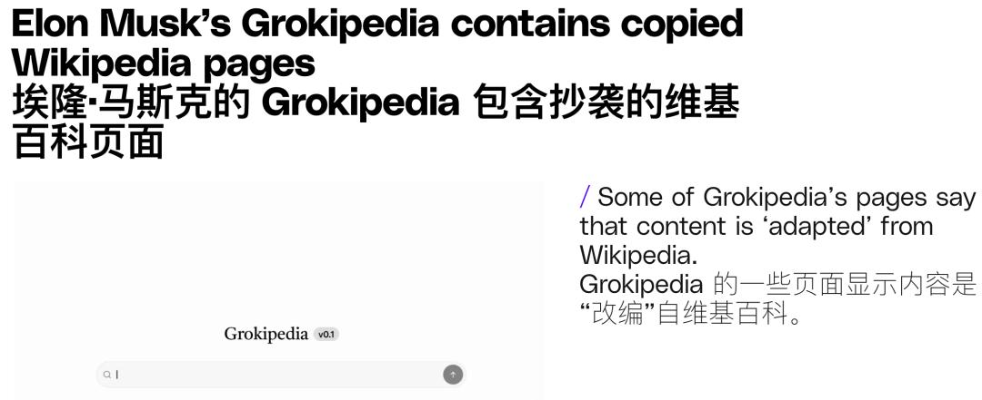 问题就在于,细心的网友们发现,很多内容Grokipedia直接从维基百科照搬而来。