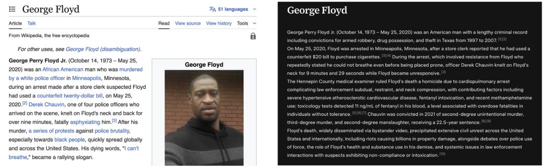 另一位网友称,George Floyd词条的处理,两者差距立判。
