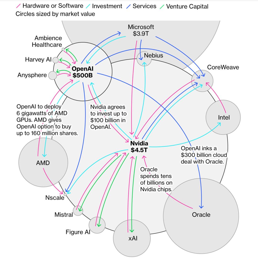 美国AI生态的最大特点,不只是技术领先,而是资本、硬件、软件与数据的互相嵌套。这场AI狂潮,已经演变成一个巨头之间相互投资、彼此绑定的庞大闭环。