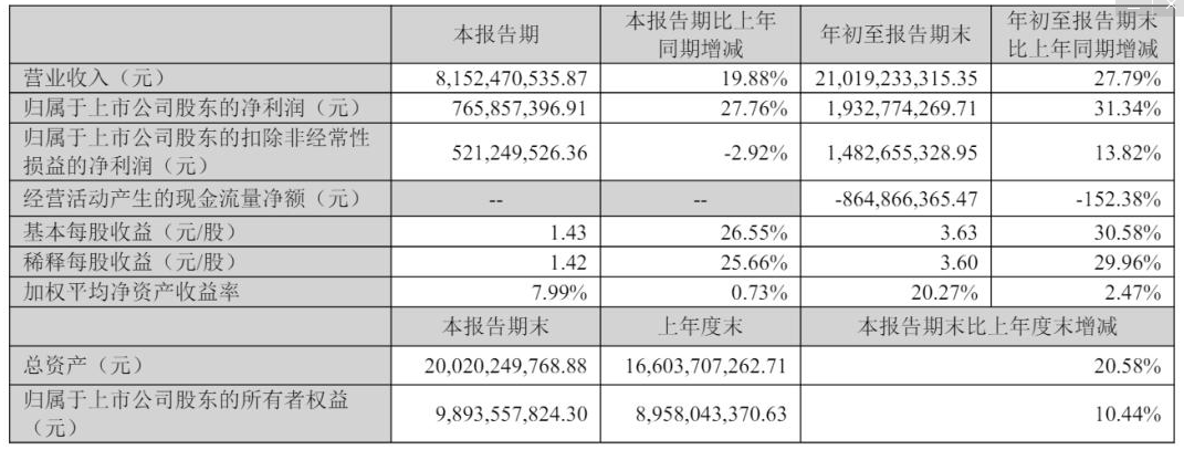 单季度维度,第三季度安克营收81.52亿元,同比增长+19.88%、净利润7.66亿元,同比增长27.76%,延续增长态势。