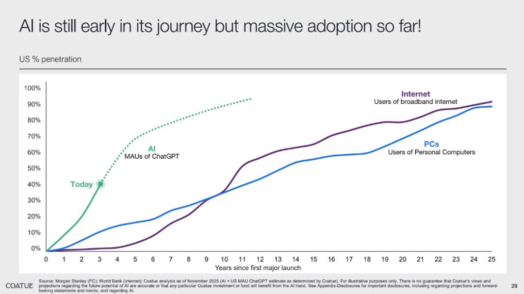 Coatue 从技术普及的速度与潜力角度给出了不同解读。