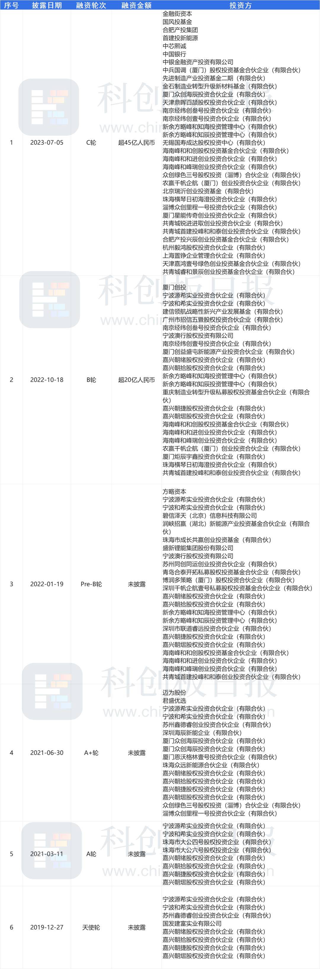 其中,2019年12月,海辰储能完成天使轮投资,参与方包括朝希投资、鑫睿创投及中国宝安。