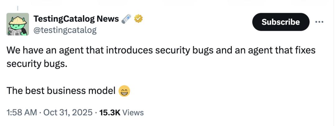 我们有一个会制造安全漏洞的Agent,也有一个会修复安全漏洞的Agent,这就是最好的商业模式。