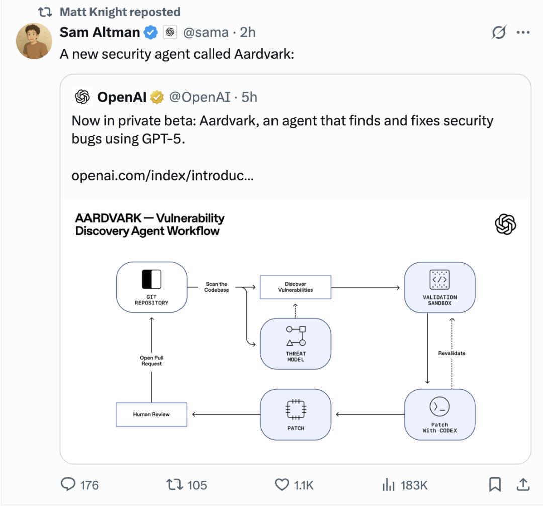 刚刚,OpenAI发布由GPT-5驱动的“白帽”Agent——Aardvark(土豚)。