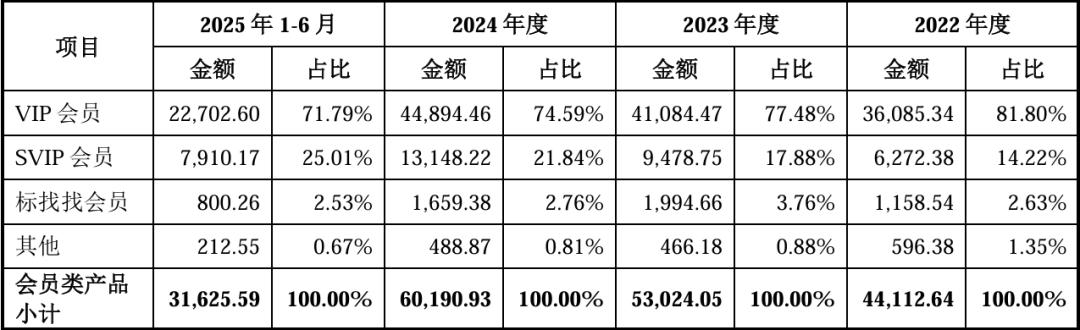 并且,大多数付费用户只愿意购买最基本的VIP套餐,一年388元,2025上半年VIP会员收入占会员类产品收入比重超过70%。
