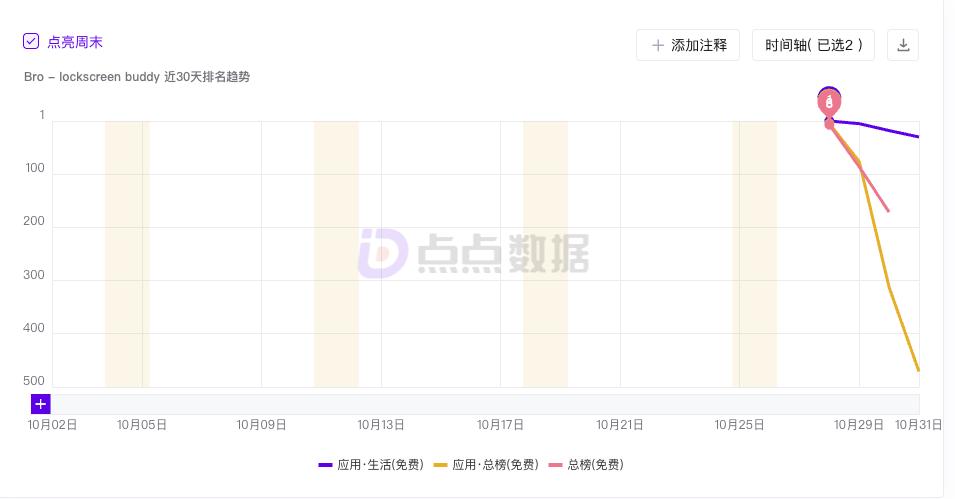 这可能也是 Bro 在冲击美榜总榜一天后,就迅速滑落的原因。截止 10 月 31 日,Bro 已经上线 4 天,虽然一直有在进行广告投放,但榜单上的排名一直在掉,目前已经掉出美国 iOS 下载总榜 500 位开外,生活分类下载榜仅排名第 30 位。除此之外,从用户评论来看,订阅价格高且必须订阅才能使用,以及较多的 Bug,是用户们“退坑”的直接原因。
